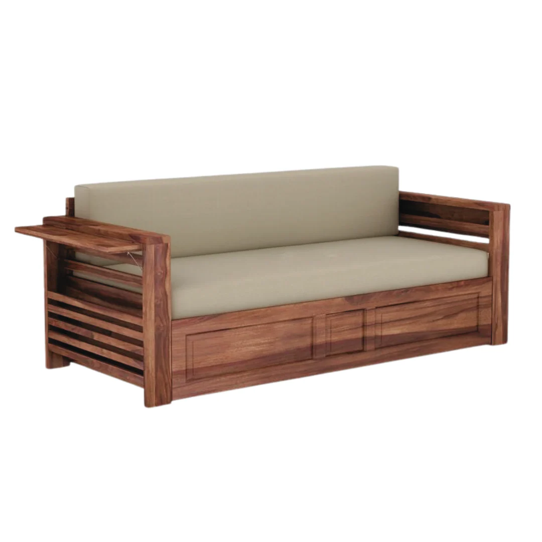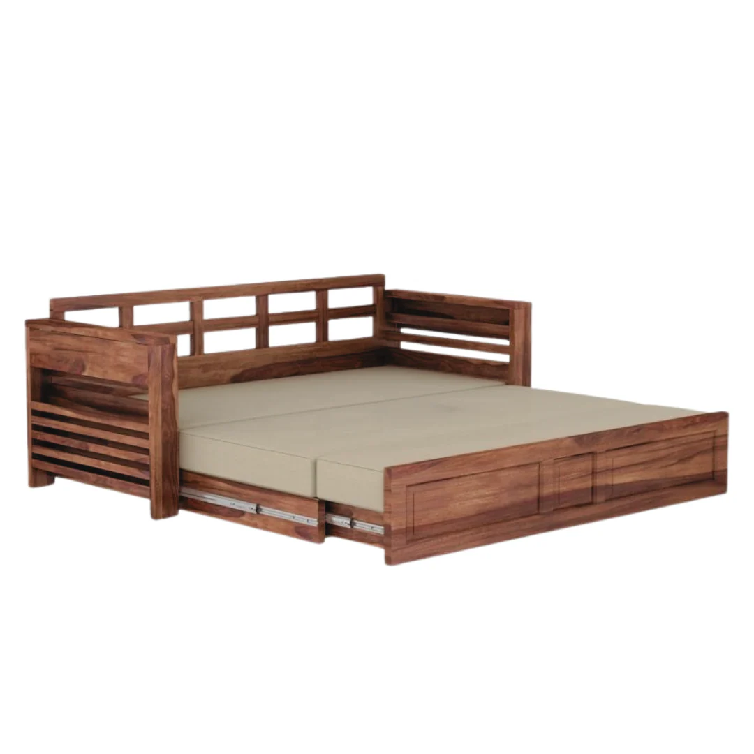 Introducing the Brado Sofa Cum Bed, crafted with durable sheesham wood. Experience the versatility of a sofa and bed in one stunning piece of furniture. Perfect for small spaces or as an extra sleeping option for guests. Elevate your living space with the Brado Sofa Cum Bed!