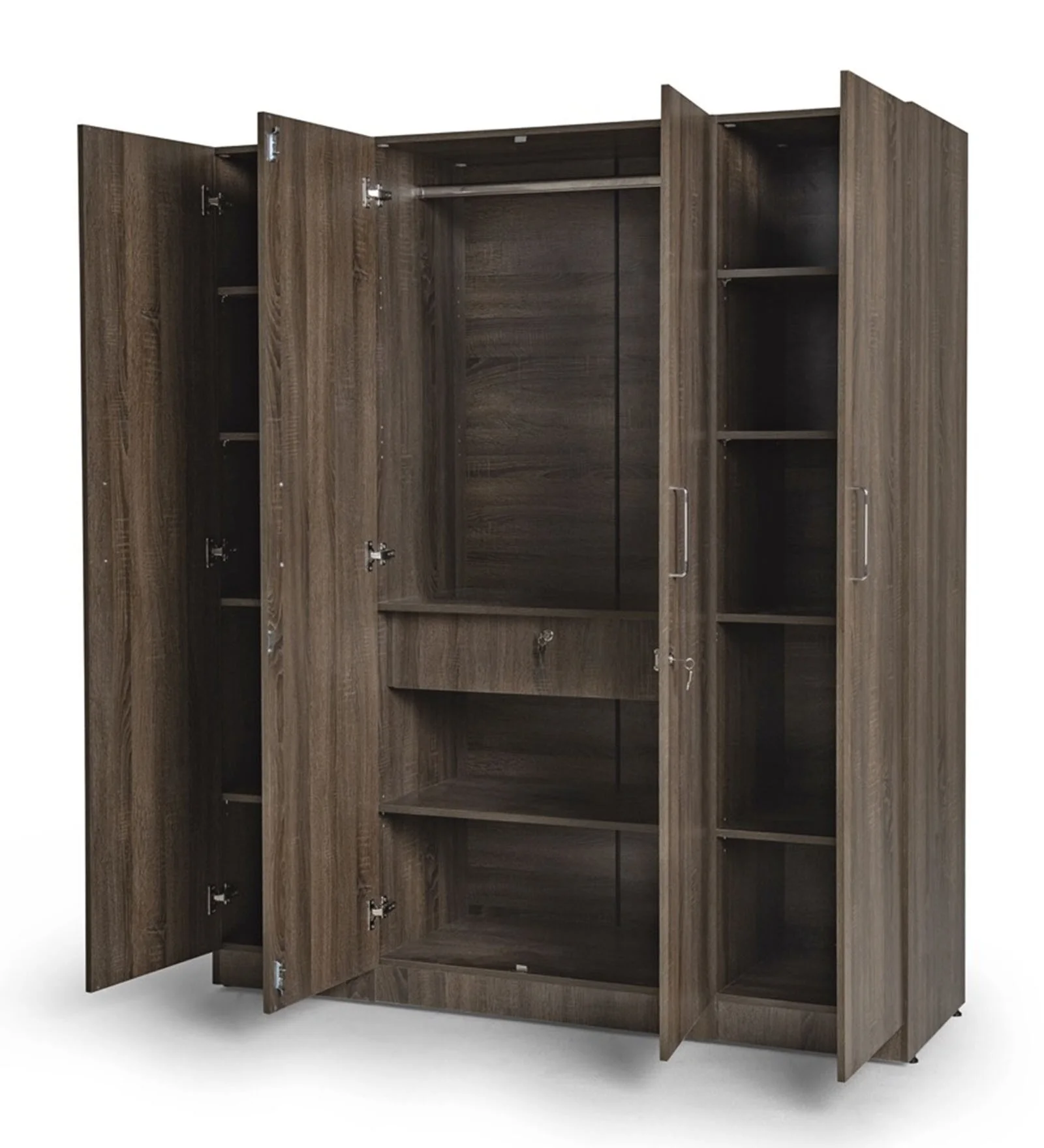 Introducing the Genoa 4 Door Wardrobe Without Mirror – the perfect addition to any bedroom! With its spacious interior and sturdy design, this wardrobe offers both style and function. Say goodbye to clutter and hello to organization with this must-have piece!